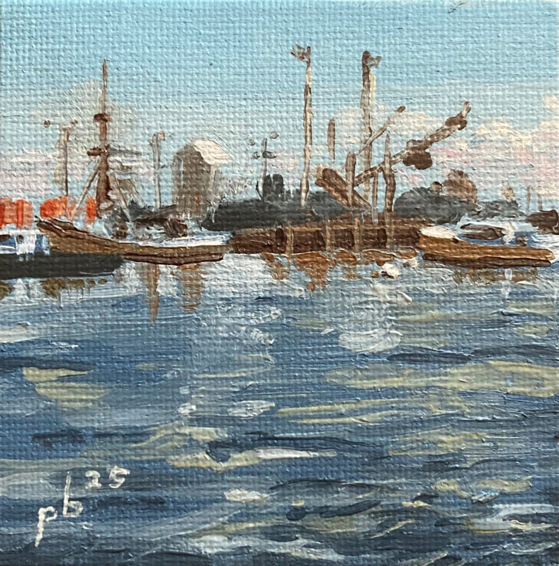 oil painting - slow harbor 5"X5" $110.00