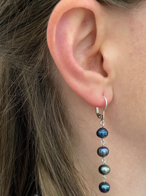 sterling silver pearl and quartz drop earrings 2.75” long $125.00