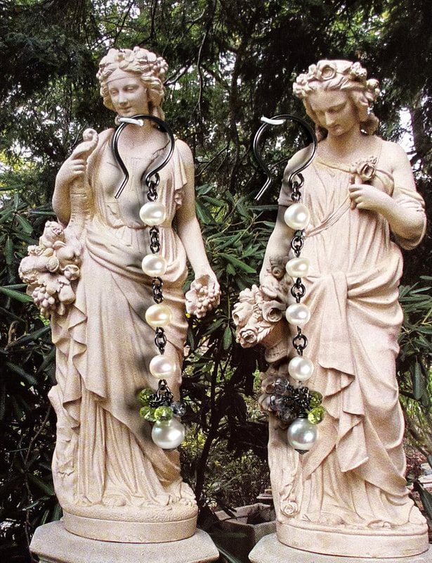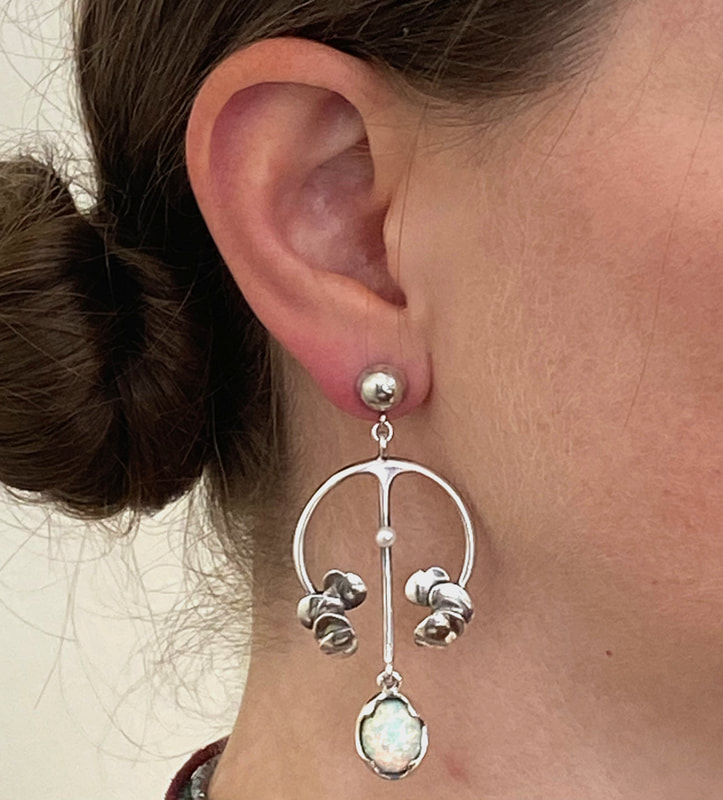 sterling silver Art Nouveau earrings with cultured pearls and faux opal $280.00
