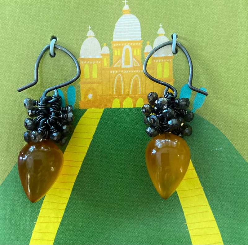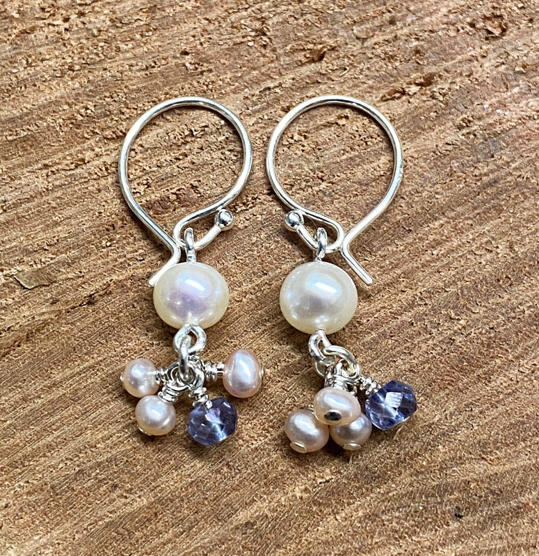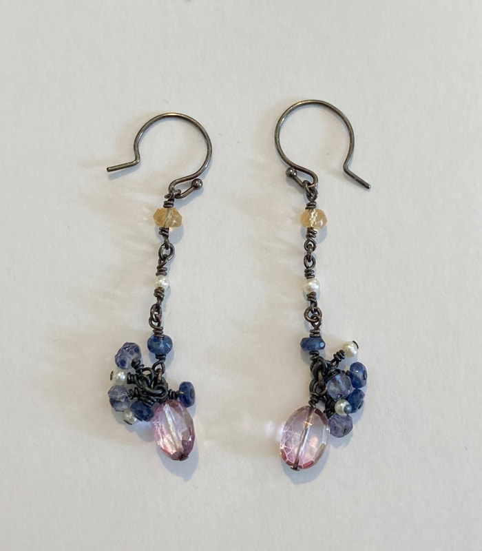 sterling silver, citrine, pearl, kyanite and quartz earrings $125.00