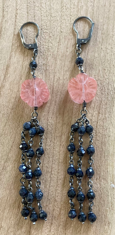 sterling silver faceted hematine heart earrings approximately 1.5” $88.00