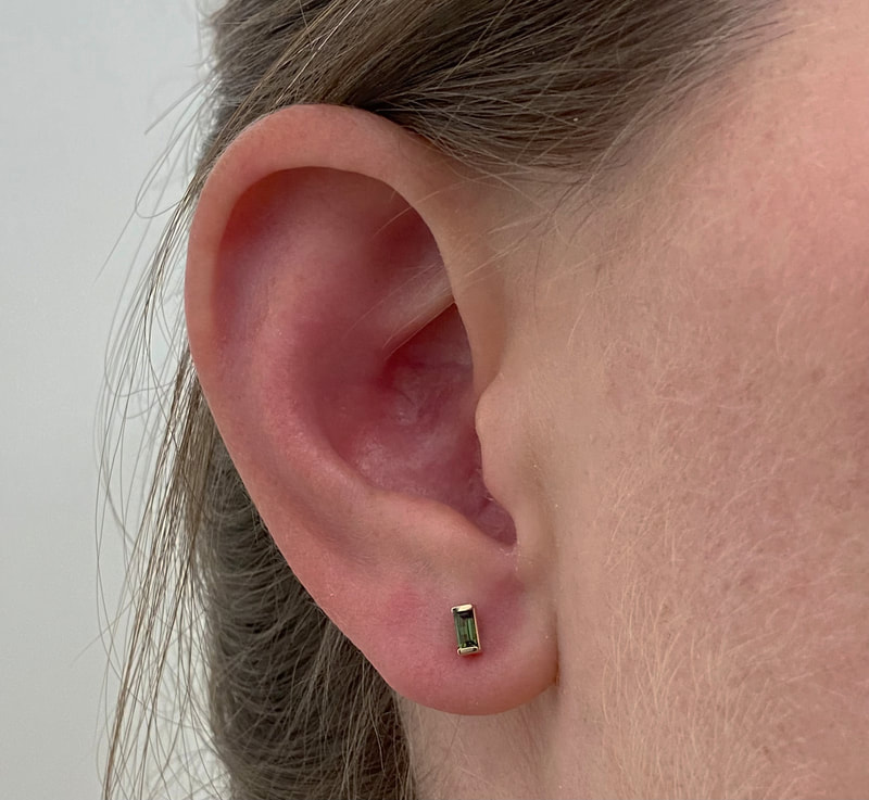14K yellow gold straight baguette green tourmaline 4mmX2mm $210.00