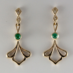 14K gold Art Nouveau earring with cabochon emeralds $795.00