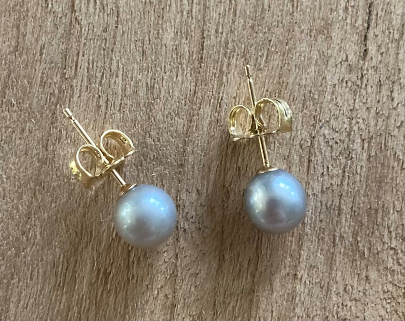 14K yellow gold and 5mm gray pearl $80.00