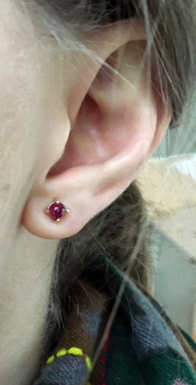 14K ruby cabochon earrings $265.00