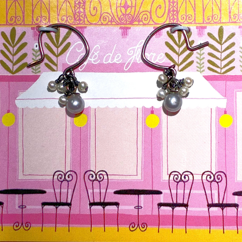 sterling silver Art Nouveau earrings with cultured pearls and faux opal $280.00