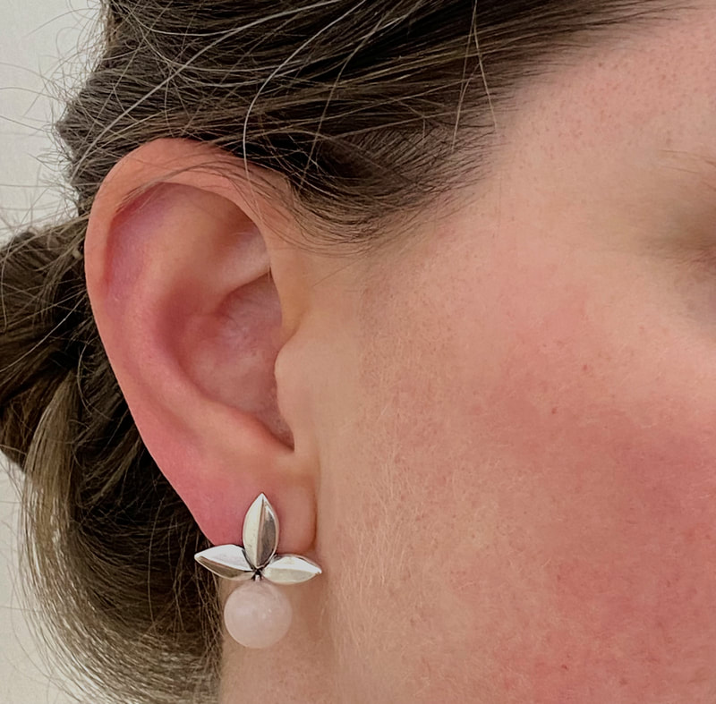 sterling silver earring on post with 10mm rose quartz sphere ($145.00)